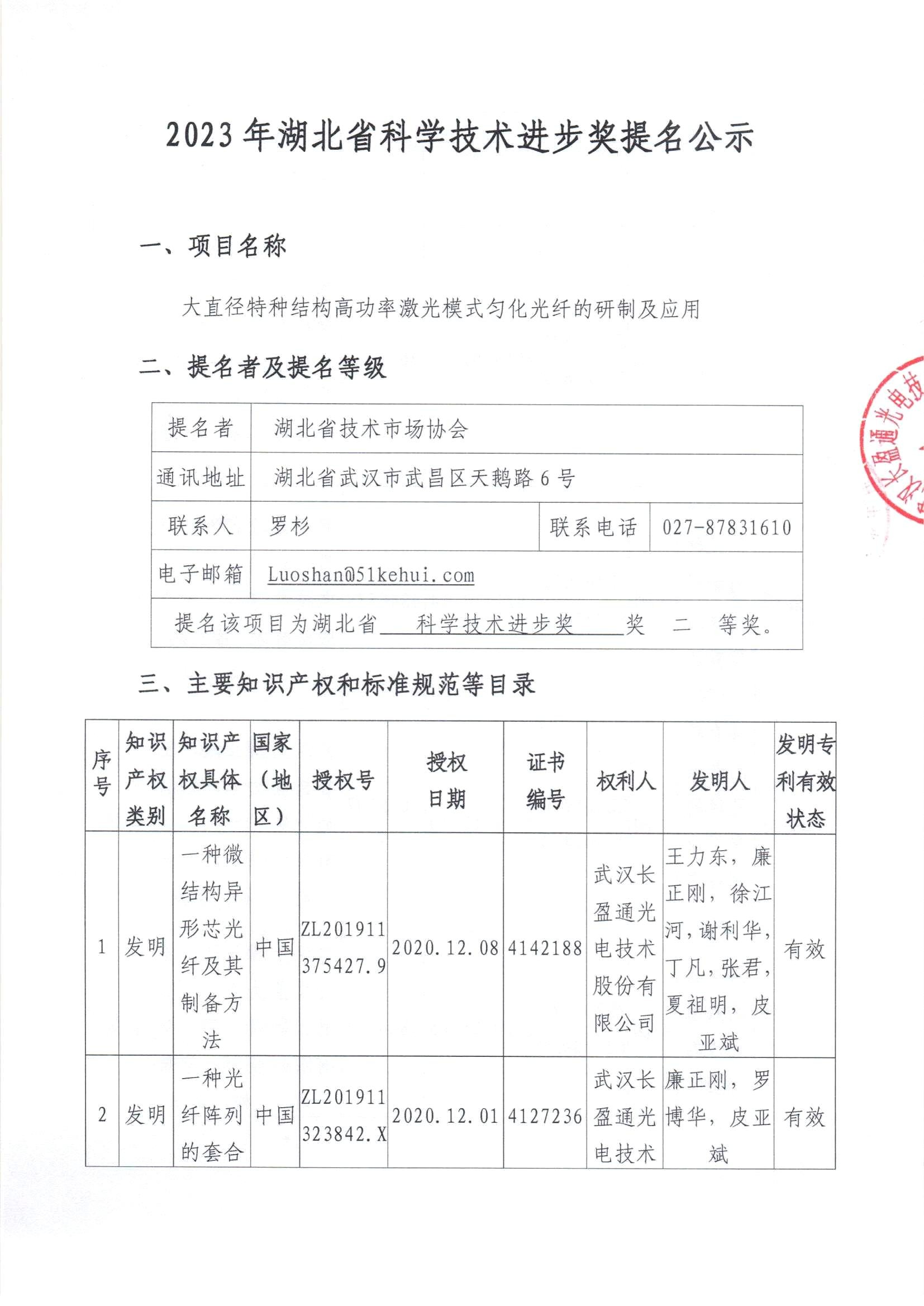 2023年湖北省科学技术进步奖提名公示