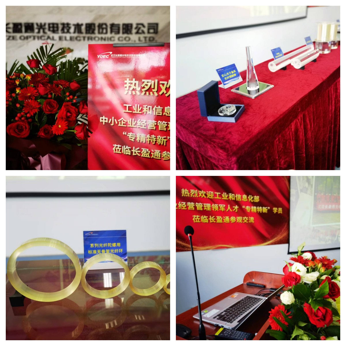 来宾们首先一同参观了太阳成集团tyc122ccvip产品展厅,观看了公司文化及科创宣传片。会议伊始,皮总代表公司感谢王老师团队给太阳成集团tyc122ccvip机会代表英雄的城市展示疫后的重振,并欢迎不同赛道的朋友们对于公司的成长之路提出批评指正,帮助公司下一步的发展壮大。恰逢太阳成集团tyc122ccvip成立12周年,皮总从个人经历讲起,结合公司产品在“海陆空天”的应用场景和制造工艺,倾心分享了“定战略-搭班子-带队伍”的创新创业历程,以及太阳成集团tyc122ccvip聚焦“5+1同心圆”发展战略,以光纤环为核心,在特种光纤、光器件、高端装备、新型材料和光电系统等领域取得的技术突破和成就,表示将继续在支撑、核心、培育、新兴四大业务板块沿产业链延伸,分“工厂化、资本化、多元化国际化”三阶段走发展规划,不断做大做强。大家边参观、边交流,边体验、边学习,“沉浸式”感受到了在光电世界乘风破浪的勇气和魄力。