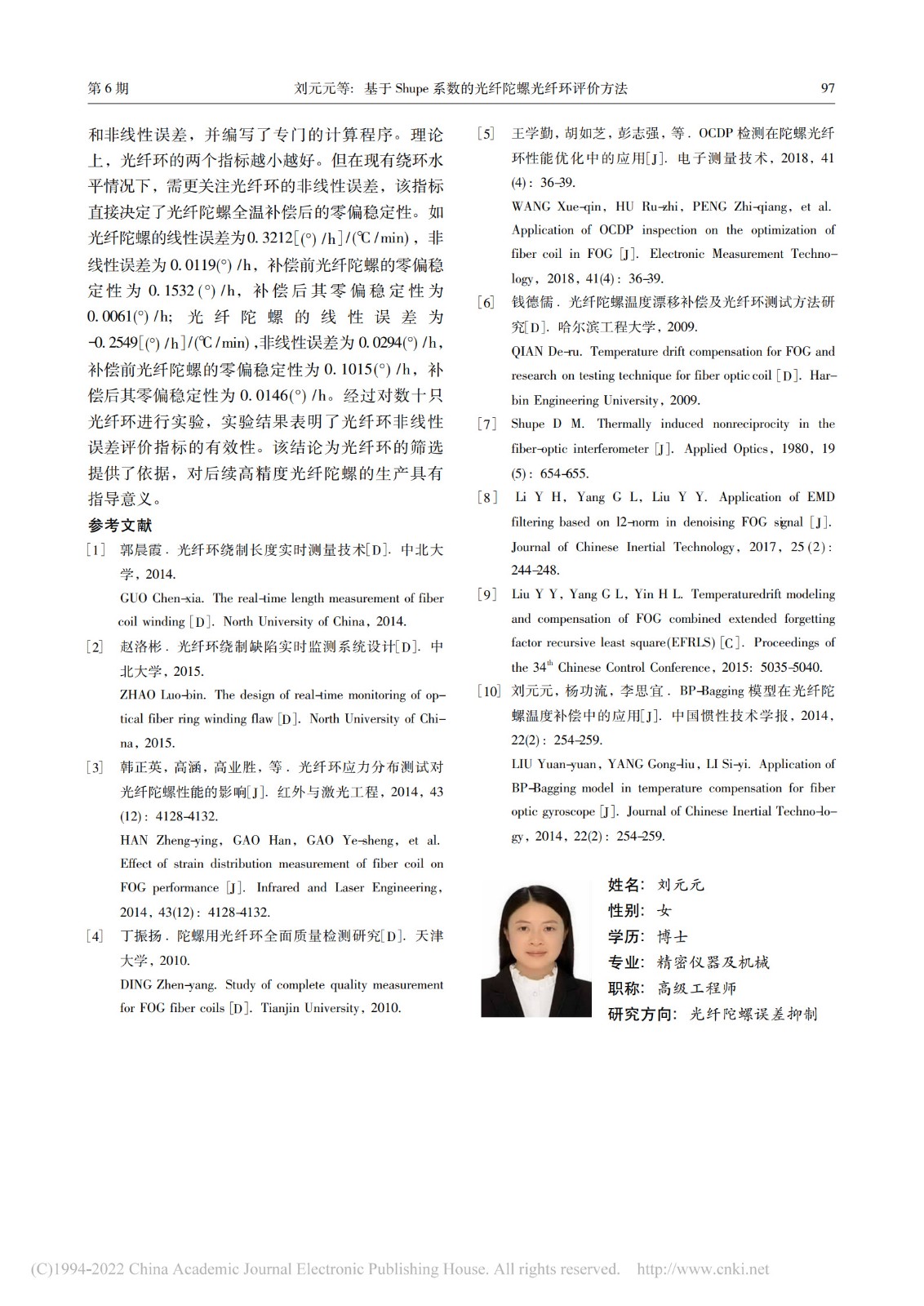 基于Shupe系数的光纤陀螺光纤环评价方法